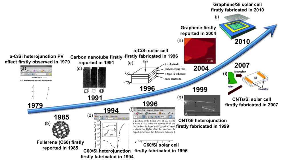 图1 碳/硅异质结太阳能电池的历史发展图