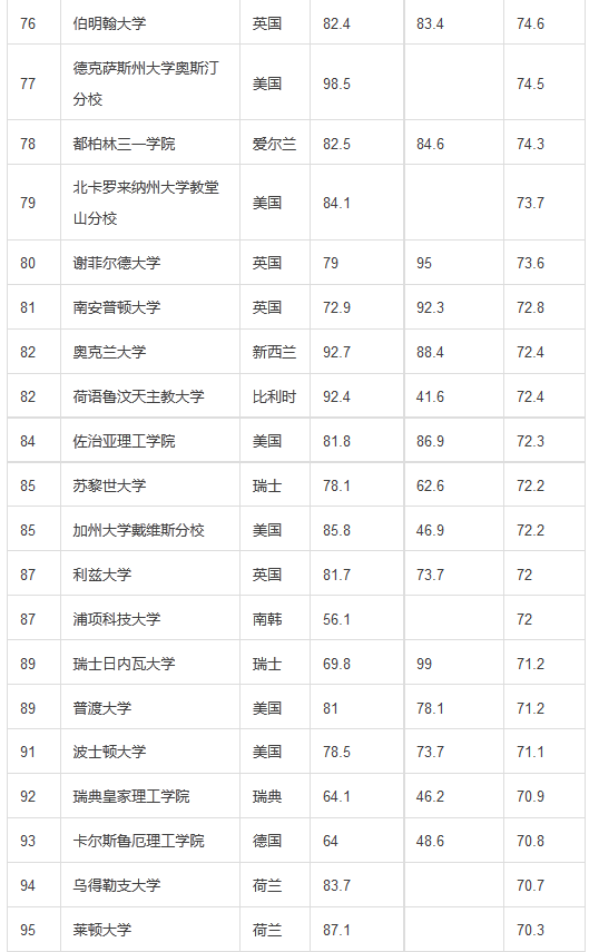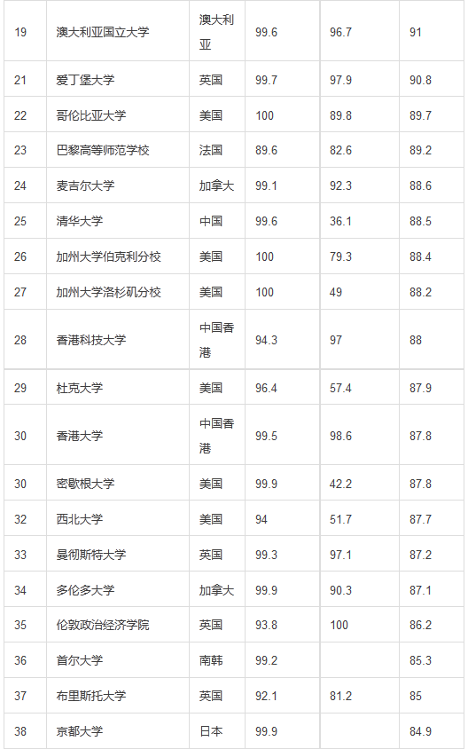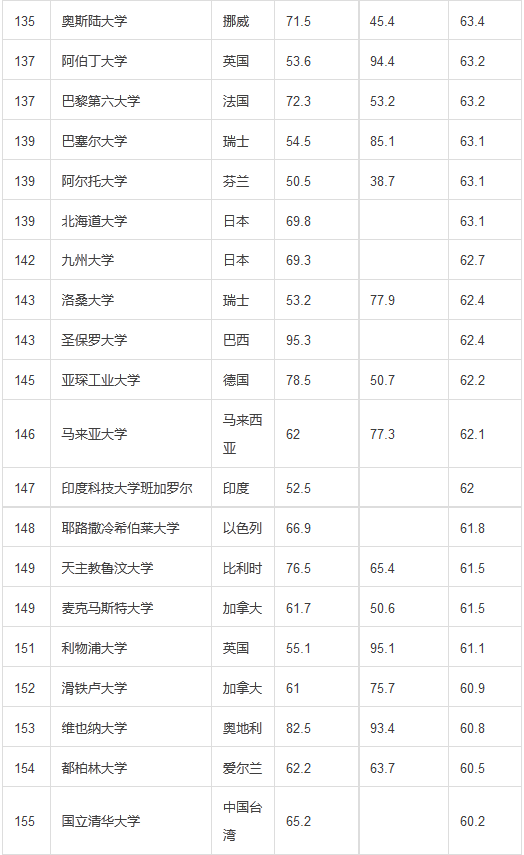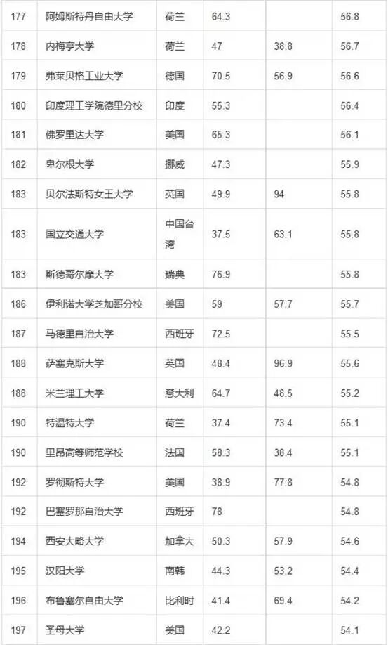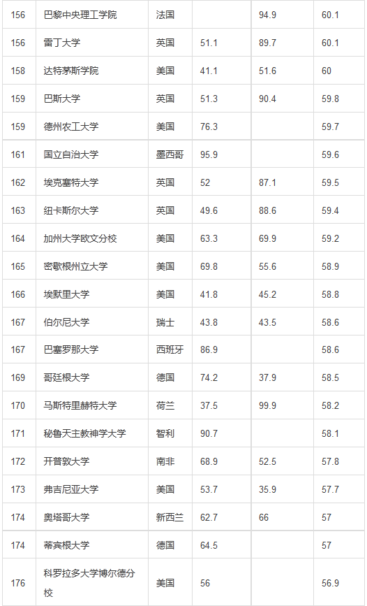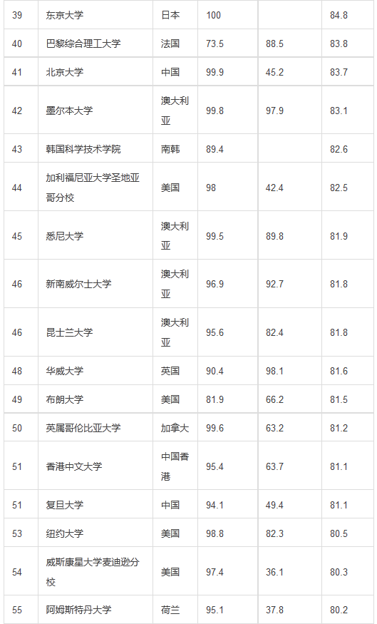 2015-2016年度QS世界大学排名TOP200名单